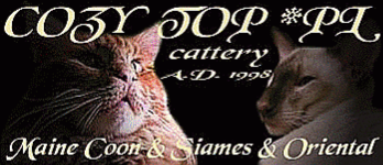 Pierwszą kotką hodowlaną rasy Maine Coon była Afrodyta która została zarejestrowana w Oddziale XIV SHKRP w Warszawie w 1998 roku. Jednocześnie został zarejestrowany przydomek hodowlany Cozy Top*PL i tak to się zaczęło :)).