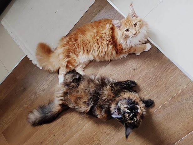 Równie szybko przekonała do zakupu kumpla dla siebie :-)). Wybór padł na kocura z mojej hodowli PL*CoonKitty Big Bena.